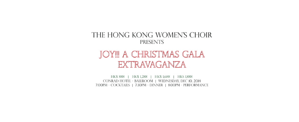 For the Christmas 2014 season, on December 10 The Hong Kong Women’s Choir hosted a dinner gala concert at the Conrad Hotel titled “Joy! A Christmas Gala Extravaganza”. The event kicked off with a cocktail hour outside the hotel’s ballroom….